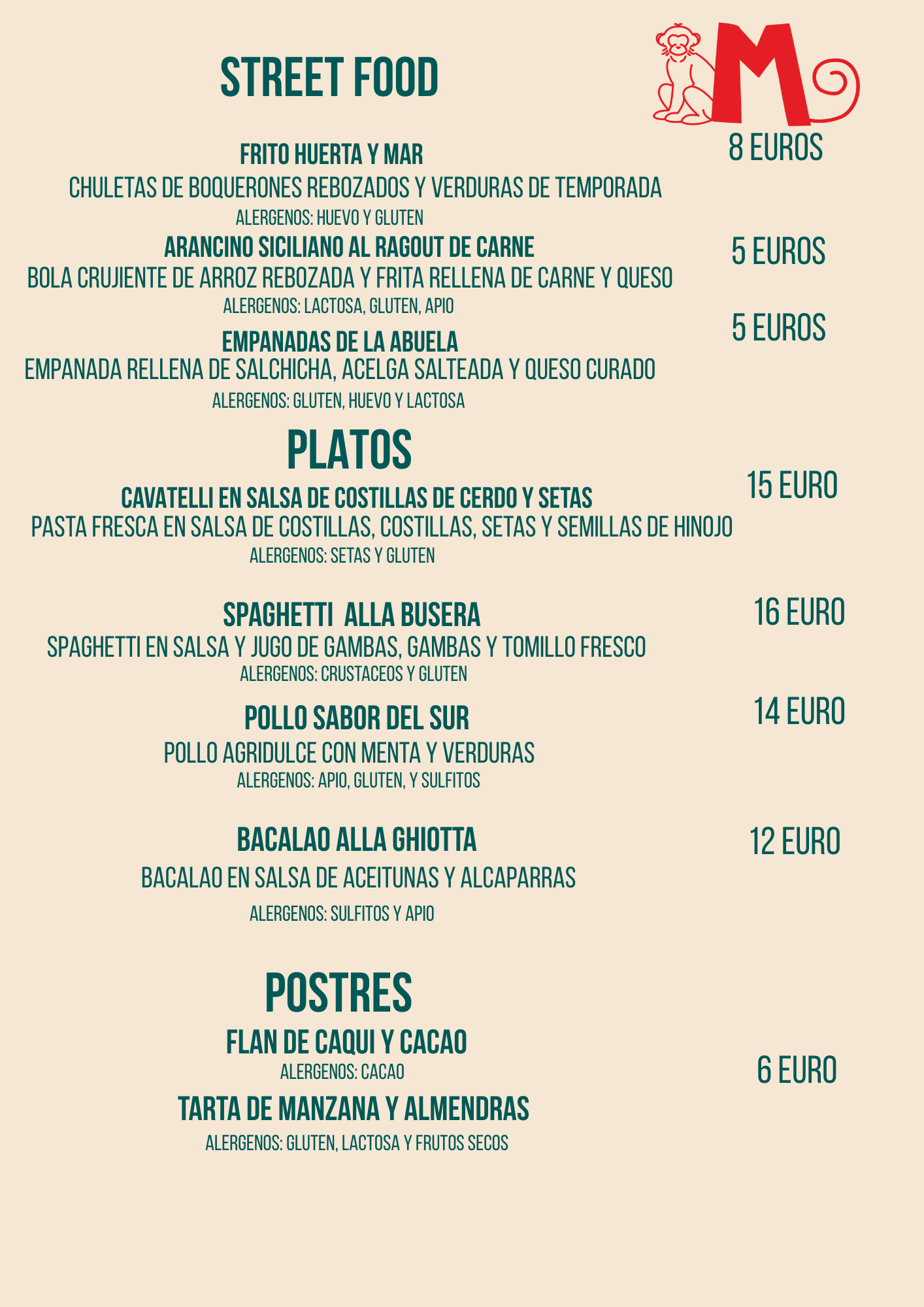En Mamamono Street Bar trabajamos con ingredientes de temporada y productos locales, por lo que nuestra carta cambia según el momento del año.